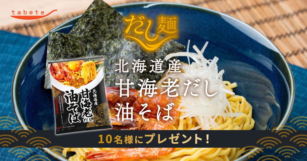 【懸賞】「tabete だし麺 北海道産甘海老だし油そば」を10名様に!