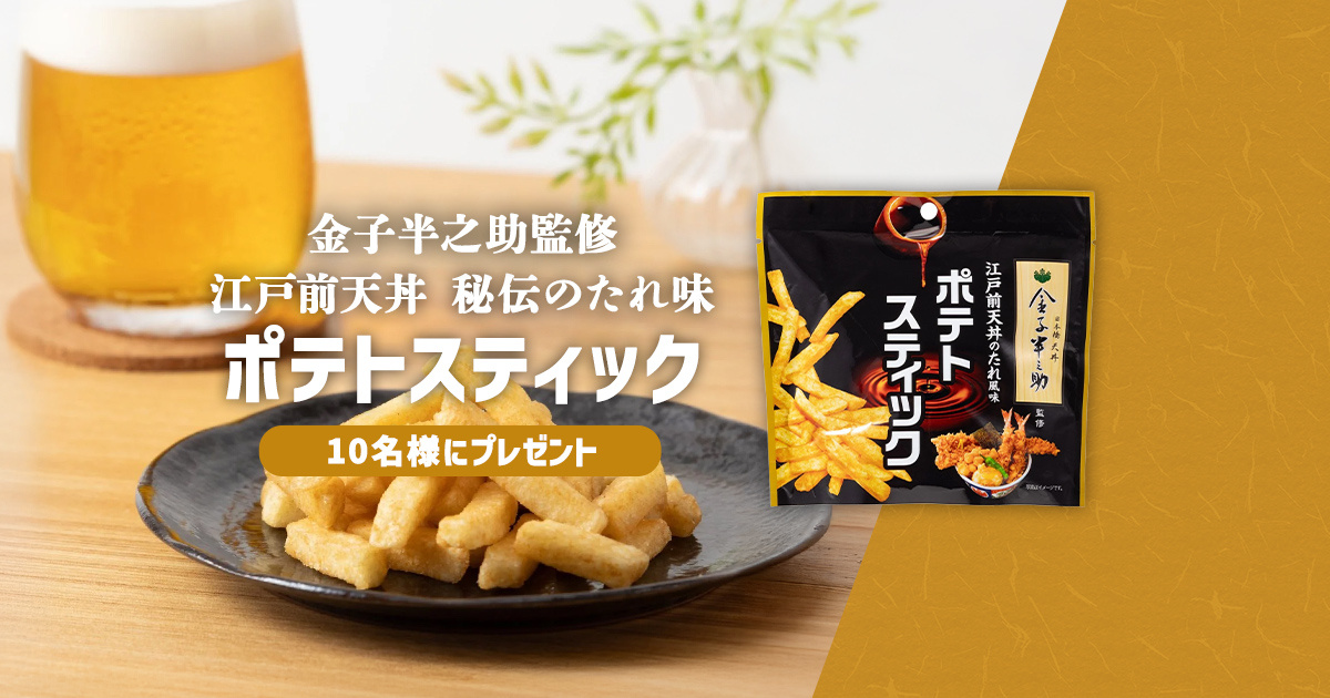 【懸賞】「金子半之助監修 江戸前天丼 秘伝のたれ味 ポテトスティック」を10名様に!