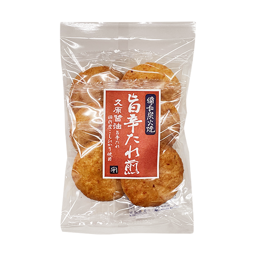 赤柚子胡椒、コチュジャン、酢、胡麻を使用した旨みのあるピリ辛たれが特徴の、東急ストアオリジナル商品「旨辛たれ」を二度漬けしてしっかり味をしみ込ませました。熟練の職人が一枚一枚丹念に備長炭で焼き上げた歯ごたえのある堅焼煎餅です。