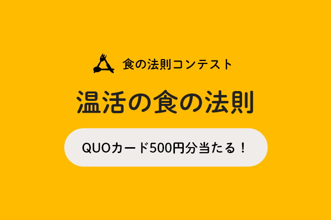 『温活の食』に関するあなたが見つけた法則を大募集! 採用された10名様にはQUOカード500円分をお送りいたします。 ご応募おまちしております!