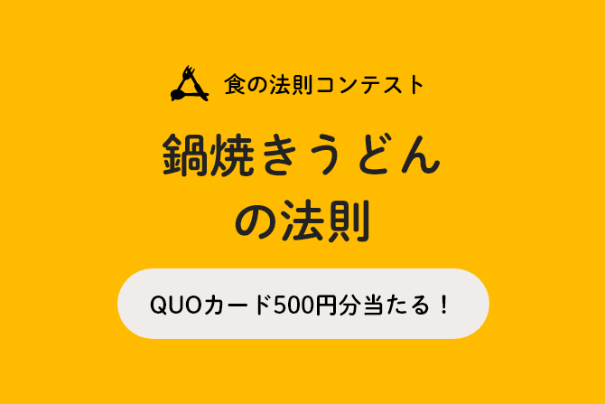 『鍋焼きうどん』に関するあなたが見つけた法則を大募集! 採用された10名様にはQUOカード500円分をお送りいたします。 ご応募おまちしております!